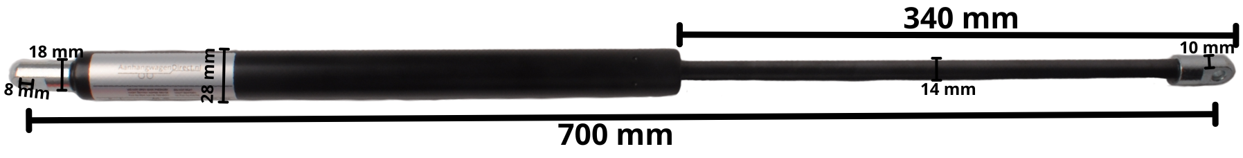 Vérin à gaz pour vans 700mm 1000N jusqu'à 2500N