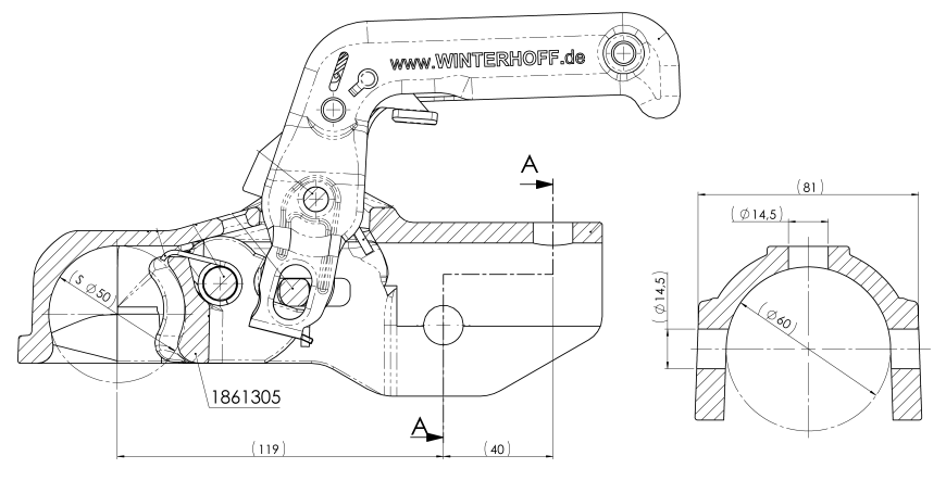 Winterhoff/Albe EM350RC - rond 60 mm - 3500 kg - Boîtier d'attelage freinée